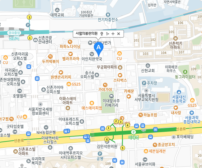 (2) 이화여대역에서 걸어가기에는 조금 거리가 있음. 먼 건 아닌데 역세권은 아니라는 거임